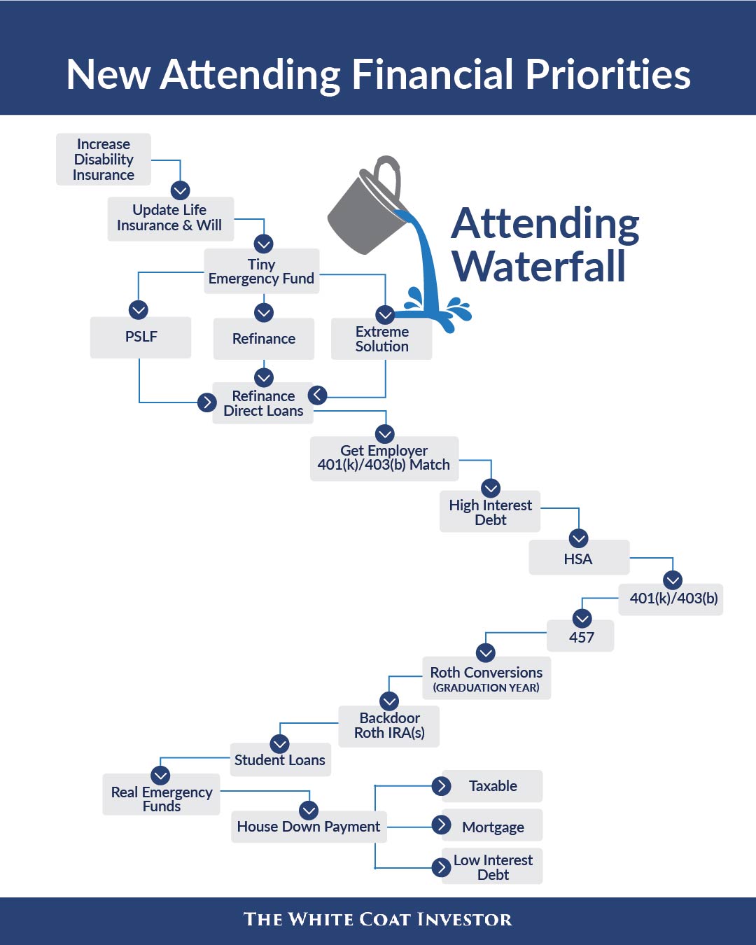 The most important aspect at the beginning of your financial journey is determining the right savings rate. If you start in residency (or at least shortly thereafter) putting 20% of your income away toward retirement, you'll never know what you're missing. Maxing out your retirement accounts will provide you with a lifetime of income, a big tax break, and protection of your assets from lawsuits.